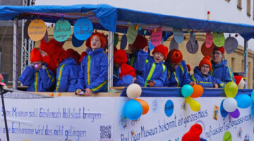 Das Paul-Maar-Museum in Hallstadt ist beschlossene Sache. Ein Thema für die Concordia Hallstadt, die damit ihren Faschingswagen gestaltete. 30 Gruppen nahmen beim neunten Gaudiwurm teil – und wurden vom Wetter sowohl erfreut als auch begossen.