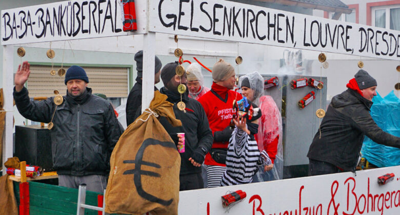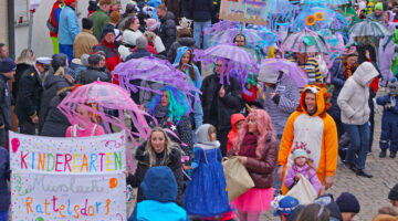 Kalt war’s dieses Jahr beim Rattelsdorfer Faschingsumzug. Vom Feiern ließ sich aber niemand abhalten – im ganzen Ort, vom Torhaus über den Marktplatz bis zum Sportplatz, wurde gefeiert. Mit dabei waren 43 Wägen und Fußgruppen. Auch ein lokales Thema fand sich beim Umzug wieder …