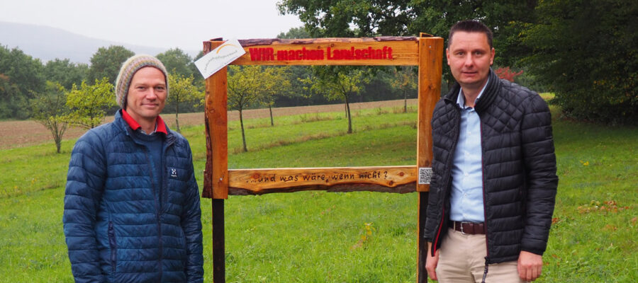 Im Rahmen der Kampagne „WIR machen Landschaft“ trafen sich Baunachs Bürgermeister Tobias Roppelt und Vertreter des Landschaftspflegeverbandes Bamberg e.V. am 22.09.2025 zu einem Gespräch am Kraiberg. Im Mittelpunkt stand die aktuelle Mittelausstattung der Landschaftspflege- und Naturparkrichtlinie (LNPR).