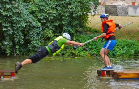 Der Samstag stand dann zunächst im Zeichen des Jubiläums-Königsfischens für die Vereinsmitglieder. Am Nachmittag lud der Verein zum ersten Baunacher Entenrennen ein. Nach dem Festgottesdienst am Sonntag, den Monsignore Edgar Hagel zelebrierte, zogen die Angler sowie Fahnenabordnungen der Baunacher Vereine zum Festplatz an der Zehntscheune. Ein Event, das noch lange in Erinnerung bleiben dürfte, war das erste Baunacher Fischerstechen am Nachmittag. Elf Teams traten hier gegeneinander an, traditionell bestehend aus jeweils zwei Personen, dem Stecher und dem Ruderer. Dabei entwickelten sich zum Teil interessante Duelle. Das Duell zweier Damenmannschaften zog sich gar über mehr als fünf Minuten. Die Zuschauer, die zahlreich den Holzsteg über die Baunach bevölkerten, waren jedenfalls begeistert. Moderiert wurde das Fischerstechen von Michael Eichler. Den Sieg sicherten sich am Ende Matthias Landgraf und Christian Hüttner (Stammtisch No Problem) vor Pascal Bottler und Albert Hümmer (Musikverein Baunach) sowie Alexander Wild und Stefan Philipp (Team Dynamites).