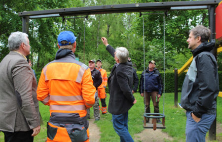 Die Spielplatzprüfung wird von Eberns Bürgermeister und Baunach-Allianz Vorsitzendem Jürgen Hennemann begleitet, welcher erfreut über das positive Urteil von Schulungsleiter Norbert Schlick ist. So sind die Spielplätze gut gerüstet für die jährliche Hauptinspektion – ähnlich wie beim Auto – welche dann von einem externen Experten durchgeführt wird. Hier wird genau kontrolliert und protokolliert, ob die neuesten Vorschriften für Spielplätze eingehalten werden, schildert Bauhofleiter Christian Raehse. Sollte tatsächlich einmal etwas passieren, geht es schließlich auch um rechtliche Fragen.