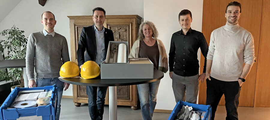 Im Titelbild: v. l. n. r.: Stefan Kühl (Archivar), Tobias Roppelt (1. Bürgermeister & Gemeinschaftsvorsitzender), Barbara Spies (Archivarin), Christian Günthner (Geschäftsführer), Tobias Neubauer (Archivar) (Foto: Laura Schneider).