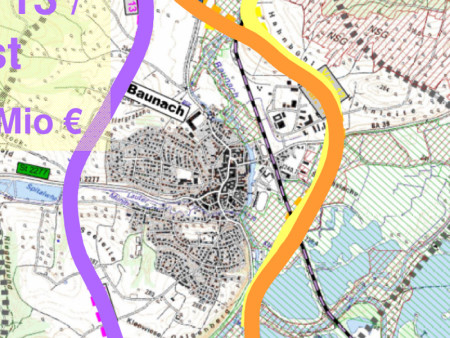 Nach einer Informationsveranstaltung der CSU in Reckendorf Ende Januar war erneut klar geworden, dass dort nach wie vor keine Einigkeit über die Trassenvariante herrscht. Baunach hatte sich bereits länger für eine Ostumgehung entschieden, die vom Straßenbauamt einmal forcierte Westtrasse war vom Stadtrat abgelehnt worden. In Reckendorf hingegen liegt noch kein Beschluss des Gemeinderats vor, welche Trasse favorisiert würde. Dies ist auch der Stimmungslage innerhalb der Gemeinde geschuldet – mehr dazu lesen Sie auch in unserem Artikel B279: Baunach, Reckendorf, Berlin [8].