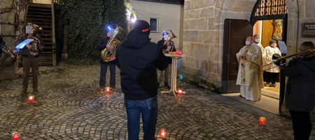 An der Vorabendmesse konnten rund 40 Personen sowohl in der Pfarrkirche, als auch außerhalb durch eine Übertragung per Livestream auf den Kirchenvorplatz teilnehmen.