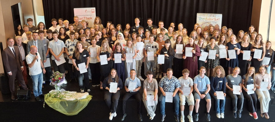 „Wir freuen uns natürlich sehr über diese enorme Resonanz. Das Freiwillige Soziale Schuljahr (FSSJ) kommt bei jungen Menschen nach wie vor sehr gut an“, sagte Simone Famulla, Leiterin des Bamberger Freiwilligenzentrums (FWZ) Carithek, nach der Veranstaltung. Die findet jedes Jahr zum Abschluss eines Schuljahres statt. Während sich im vergangenen Schuljahr noch 60 Schülerinnen und Schüler zur Abschlussfeier anmeldeten, nahmen in diesem Jahr 90 der insgesamt 204 registrierten FSSJ-ler teil – so viele wie noch nie zuvor. Sie brachten Eltern, Geschwister und Freunde mit. Im Unterschied zu den FSSJ-Abschlussfeiern der Vorjahre sei das enorme Interesse, bei der Veranstaltung dabei sein zu wollen, in diesem Jahr offensichtlich spürbar gewachsen, freuten sich Famulla und ihr Team. Mit insgesamt 250 Menschen war der Saal im Bürgerhaus Lechner Bräu zu Baunach bis auf den letzten Platz besetzt.