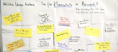 Seitens der Landwirtschaft wurde angemahnt, den Flächenverbrauch gering zu halten und lieber die vielen Dächer mit PV zu bestücken als Ackerland, das wir für unsere Ernährung brauchen, zu versiegeln. Ebenso müssten Bäume und Grünflächen erhalten bleiben, da sie das Mikroklima feucht und kühl halten. Auch auf der Pinnwand fanden sich Anregungen wie etwa eine Sammelbestellung von Balkonphotovoltaik, Wasserkraftwerke in den alten Mühlen oder Lehm als Baumaterial.
