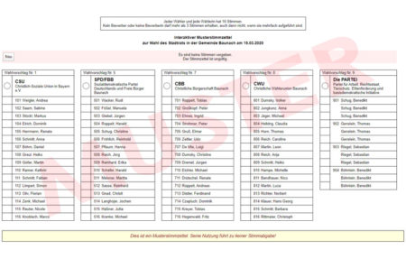 Allen Wahlberechtigten in der Verwaltungsgemeinschaft Baunach, also in der Stadt Baunach und den Gemeinden Gerach, Lauter und Reckendorf bietet die VG im Vorfeld der Kommunalwahl am 15. März 2020 einen besonderen Service an: Auf der Internetseite gibt es den Probe-Stimmzettel für die Stadtratswahl und die Gemeinderatswahlen.