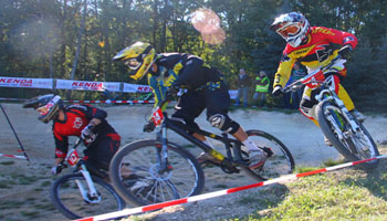 Enge Kurven, Waschbretter, spektakuläre Sprünge – Action, Stimmung und Final-Feeling, das bot der 7. Lauf des Mitteldeutschen-4-Crosscups (MDC) der Serie 2013 am vergangenen Wochenende in Baunach. Den teilnehmenden Jugendlichen der U 14, Hobby-Fahrern und -Fahrerinnen bis zu Lizenzfahrern aus ganz Deutschland und Tschechien bot der Bikepark der Firma Messingschlager einen anspruchsvollen Parcours. Gesamtsiegerin des MDC, Sarah Gerlach, und Konkurrentin Eva Katharina Brauer, waren sich einig: „Der Parcour ist nicht leicht, da er relativ flach ist. Spannend ist er durch die vielen Geraden, da kann sich auf der Strecke noch alles entscheiden.“