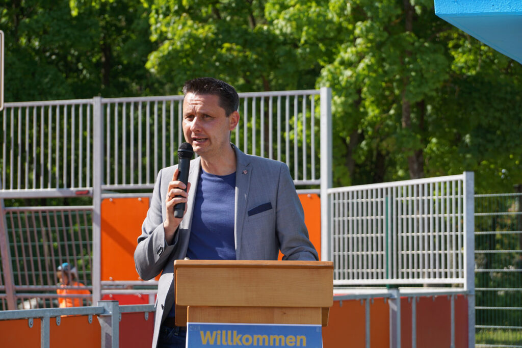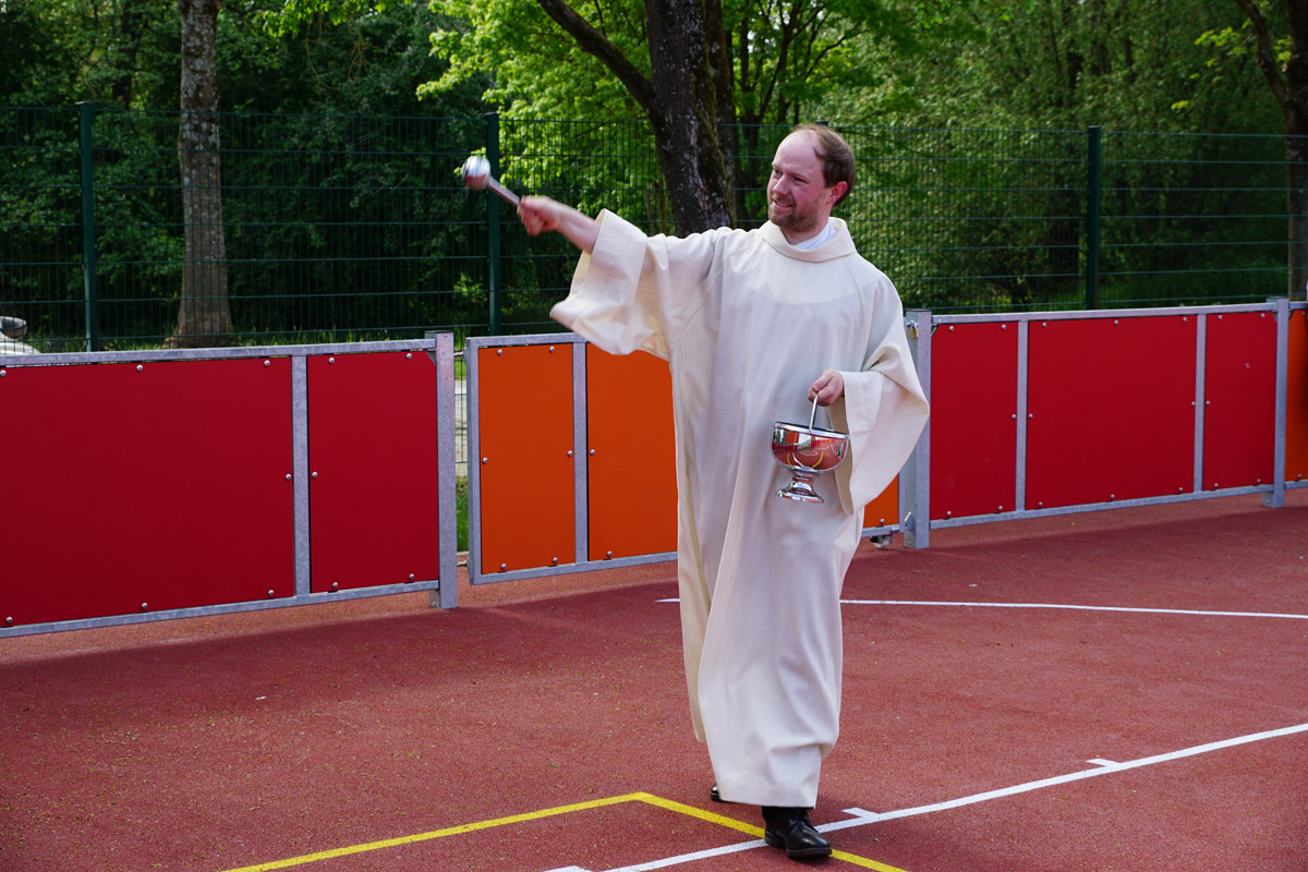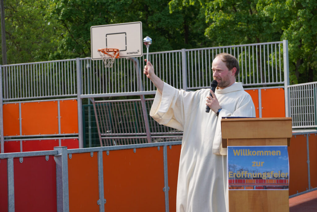 Pastoralreferent Christian Storath nahm die kirchliche Segnung des Feldes vor. Die Kinder und Jugendlichen freuten sich insbesondere über das kühlende Weihwasser, so dass Storath nicht nur einmal versprühen musste … Bürgermeister Tobias Roppelt hob in seiner Ansprache hervor, dass das Multifunktionsfeld eine echte Herzensangelegenheit für die Stadt sei. Es sei wichtig, insbesondere den jungen Menschen Raum zur Entfaltung zu bieten. Mit der Sanierung aller Spielplätze in den vergangenen Jahren habe die Stadt bereits wichtige Impulse gesetzt – das neue Spielfeld sei nun ein weiteres Highlight für alle Generationen. Sein besonderer Dank galt dem Jugendparlament, dem Stadtrat, dem 1. FC Baunach, allen Spendern sowie dem Bauhof für die tatkräftige Unterstützung.