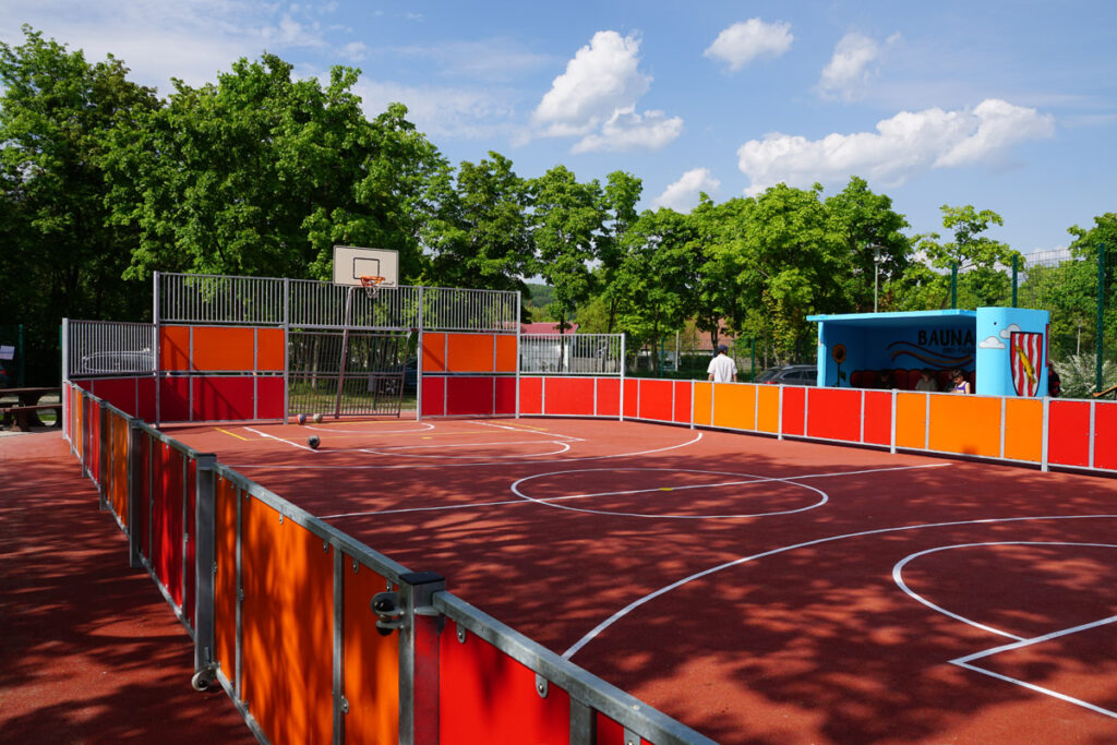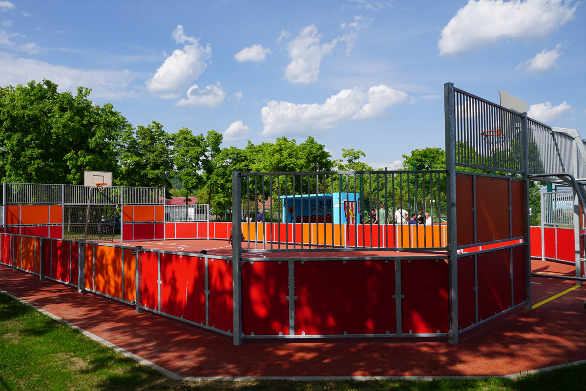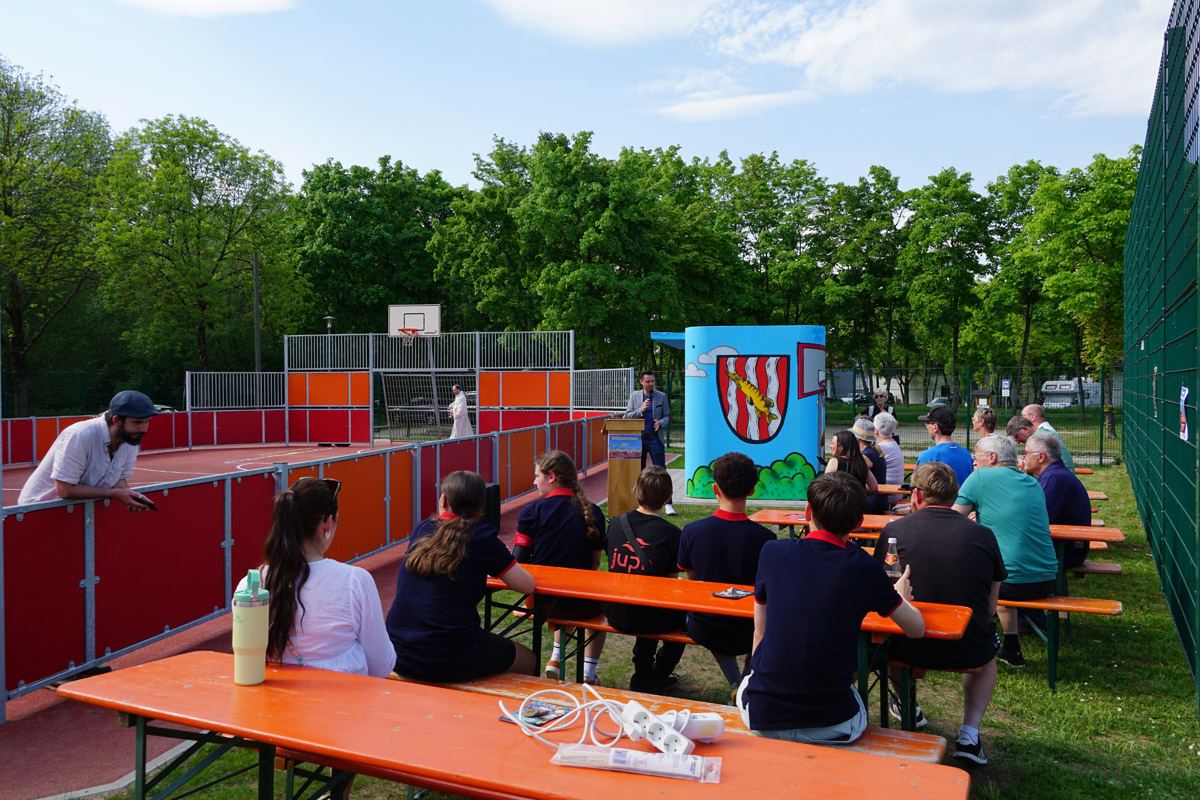 Das Spielfeld, ausgestattet mit zwei Fußballtoren und zwei Basketballkörben, steht nun der Öffentlichkeit zur Verfügung und soll als lebendiger Treffpunkt für sportliche Aktivitäten und Begegnungen dienen. Besonderes Augenmerk wurde auf die Mitgestaltung durch junge Menschen gelegt: So brachte sich das Jugendparlament nicht nur in die Planungen ein, sondern setzte gemeinsam mit einem Graffiti-Künstler kreative Akzente. Noch wenige Tage vor der Eröffnung wurde ein neuer Unterstand auf dem Gelände farbenfroh gestaltet.