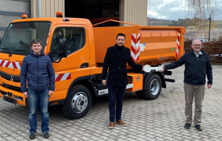 Das Kommunalfahrzeug „FUSO“ verstärkt ab sofort den städtischen Bauhof. Armin Zwingmann, Verkaufsberater für Kommunal- und Gewerbetechnik der BayWa AG übergab das Fahrzeug an Bürgermeister Tobias Roppelt und Bauhofleiter Peter Schug.