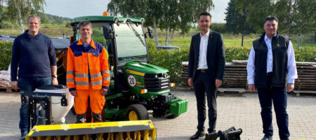 Im Juni hat der Stadtrat dann die Anschaffung beschlossen. Nun wurde das Fahrzeug durch Bernd Krauß von der Niklas Landtechnik aus Wonsees an Bürgermeister Tobias Roppelt, Bauhofleiter Peter Schug und stellv. Bauhofleiter Bruno Oberreuter übergeben.