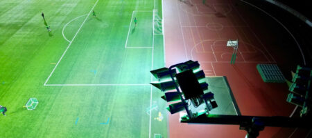 Die insgesamt 12 Module sind an den sechs Masten so positioniert, dass eine gleichmäßige Ausleuchtung des Platzes und der Laufbahn gewährleistet ist und durch die Blendschutzvorrichtungen kein Licht gestreut wird. Sämtliche Anforderungen der beantragten Fördermittel wurden erfüllt. Zudem entfällt in Zukunft der Austausch von Leuchten, da die Beleuchtung für die nächsten 25-30 Jahre wartungsfrei sein wird.