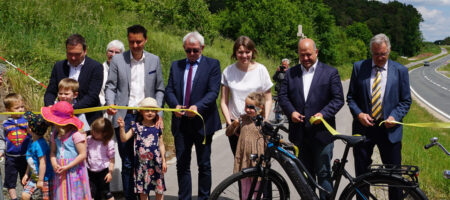 „Früher war das Fahrradfahren hier eine Mutprobe“, erläuterte Lauters Bürgermeister Ronny Beck im Rahmen der Grußworte. Denn die Staatsstraße 2277 zwischen Baunach und Appendorf weist zahlreiche Kurven und Steigungen auf, nicht immer ist sie übersichtlich. Nun schafft der Radweg hier Abhilfe. Beck bedankte sich bei den Grundstückseigentümern, ohne die der Bau nicht möglich gewesen wäre. Zeitweise habe der Radweg auf der Kippe gestanden, letztendlich habe man sich aber einigen können. Auch an die früheren Bürgermeister Ekkehard Hojer (Baunach) und Armin Postler (Lauter) ging ein Dankeschön, da sie den Radweg in ihren Amtszeiten angestoßen hatten. Und auch Landrat Johann Kalb, den Landtagsabgeordneten Holger Dremel und die Bundestagsabgeordnete Emmi Zeulner schloss Beck ein – sie hatten sich für Fördergelder stark gemacht.