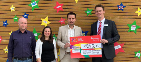 Die Spendenübergabe mit 1. Bürgermeister Tobias Roppelt, 2. Bürgermeister Peter Großkopf und Melanie Schmitt vom Stadtmarketing mit der Geschäftsleitung des Kinder- und Jugendhospiz Sternenzelt Bamberg Robert Simon fand im Rahmen einer kleinen Führung durch das Hospizgebäude statt.