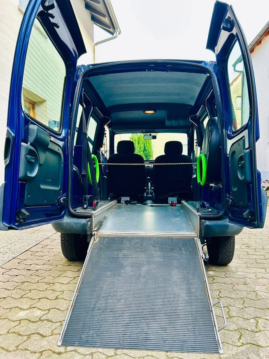 Der Renault Kangoo ist für den sicheren Transport einer mobilitätseingeschränkten Person ausgelegt und verfügt über einen vorhandenen Rollstuhlplatz mit Rampe sowie abgesenktem Heck. Damit eignet er sich sowohl für die private Nutzung als auch für den Einsatz in sozialen Einrichtungen.