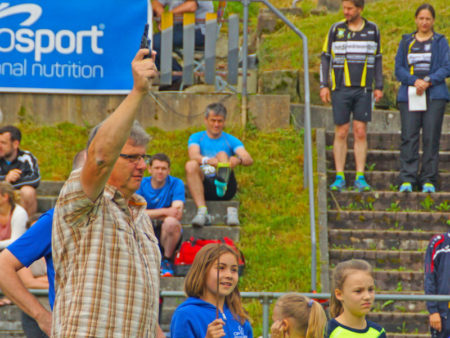 Baunachs Bürgermeister Ekkehard Hojer eröffnete den 12. Veitensteinlauf und gab zu allen Läufen den obligatorischen Startschuss. Lauf-Abteilungsleiter Matthias Langhojer unterhielt die Zuschauer und informierte über Lautsprecher über die aktuellen Zwischenstände. Beste Sicht hatten die Zuschauer von der Terrasse des Sportheims. Absolut perfekt: Das Wetter hielt und bescherte den Sportlern gutes Laufwetter, bei nicht zu heißen Temperaturen und ohne Regen.