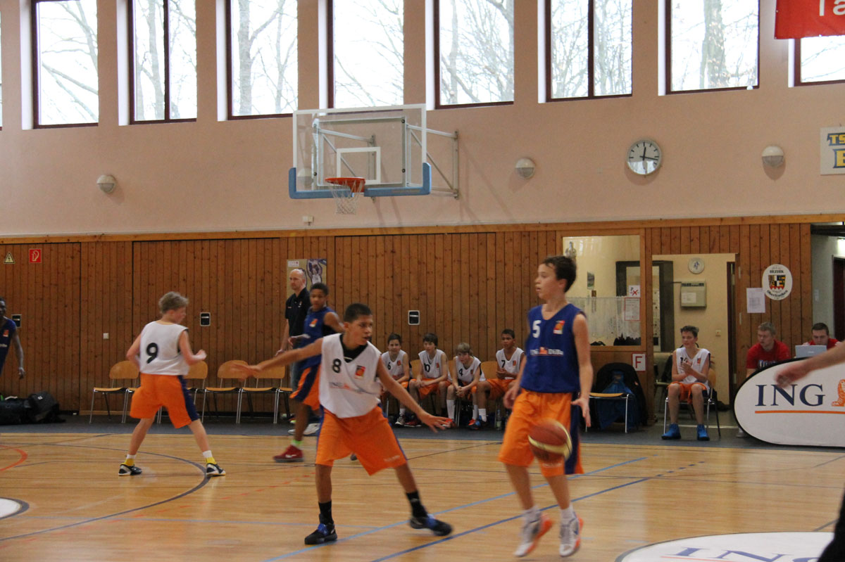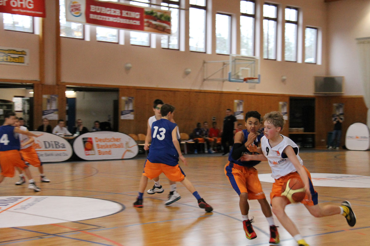 Daher verwunderte es Reiner Hoffmann – selbst Basketballer und Schiri – auch nicht, in der Auswahlmannschaft von Bayern bekannte Gesichter aus Breitengüßbach zu sehen, die sich zu seiner Freude für das Finalturnier in Wetzlar qualifiziert haben. Brandon (12 J.) und Nicholas (12 J.) Tischler und Manuel Feuerpfeil (13 J.) spielen inzwischen zwar in Bamberger Vereinen, haben ihre ersten richtigen Basketballschritte aber in der Hans-Jung-Halle in Breitengüßbach gemacht.