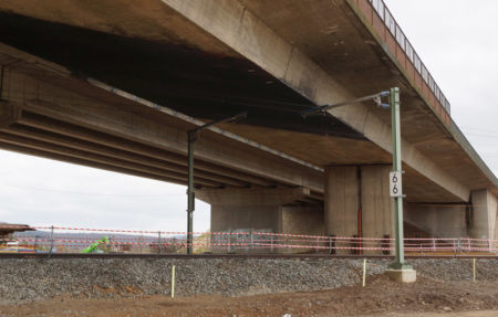 Die Autobahnbrücke besteht aus zwei einzelnen Brücken. Die im Bild rechte wird am Wochenende abgebrochen.