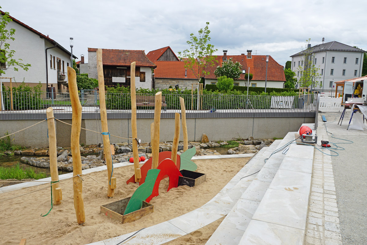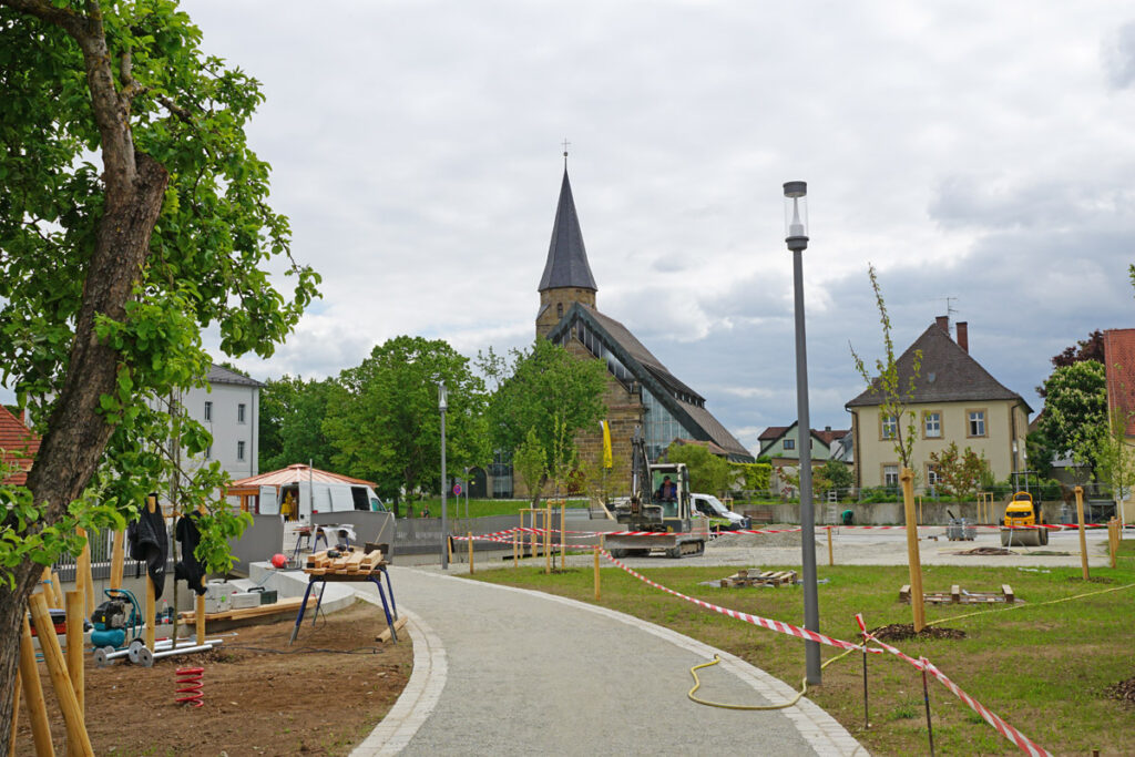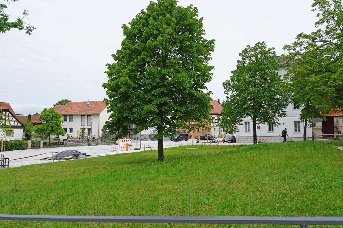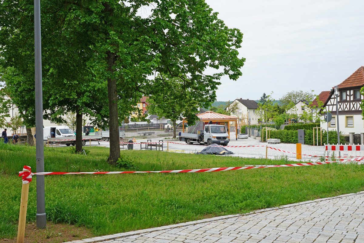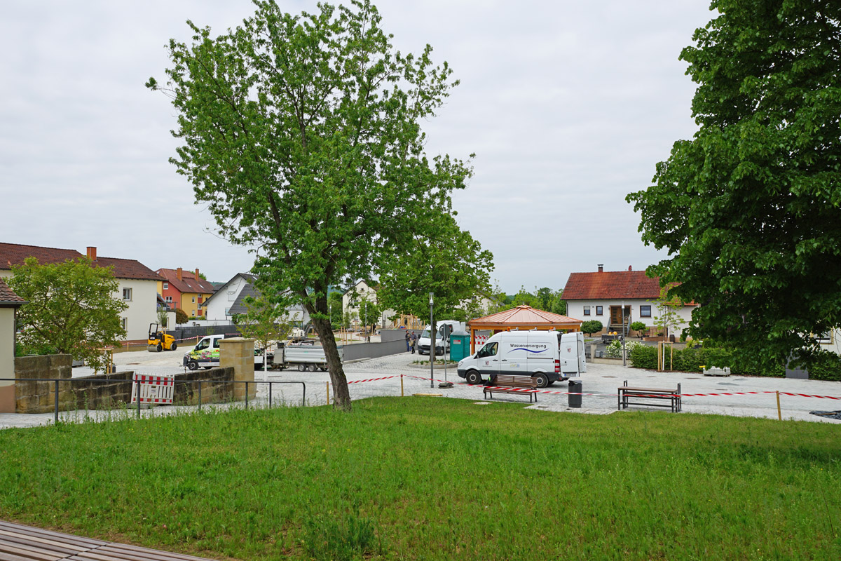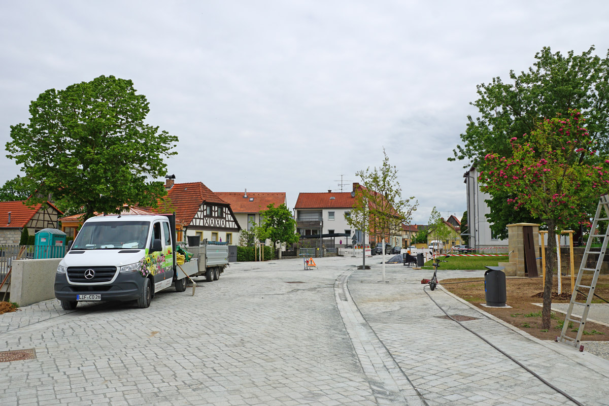 Die besondere Herausforderung war, wie Bürgermeisterin Sigrid Reinfelder erklärt, dass ein multifunktionaler Platz entstehen sollte. Denn in der Ortsmitte findet sich auch ein Festplatz, der bleiben sollte, zum Beispiel für die Kirchweih. Zudem sollten sich auch Familien mit Kinder wohlfühlen, Radfahrer ihre Fahrzeuge abstellen und verweilen können – und nicht zuletzt auch die Anwohnerinnen und Anwohner einbezogen werden. Bei denen bedankt sich Reinfelder besonders, denn sie hatten es in den vergangenen Jahren nicht einfach, besonders in der nasskalten Jahreszeit mit viel Dreck vor der Haustür. Was sofort zu sehen ist: Viele haben aber auch aktiv mitgemacht – und zum Beispiel eigene Flächen neu gestaltet oder zugelassen, dass direkt an ihren Grundstücksgrenzen Hecken gepflanzt wurden.