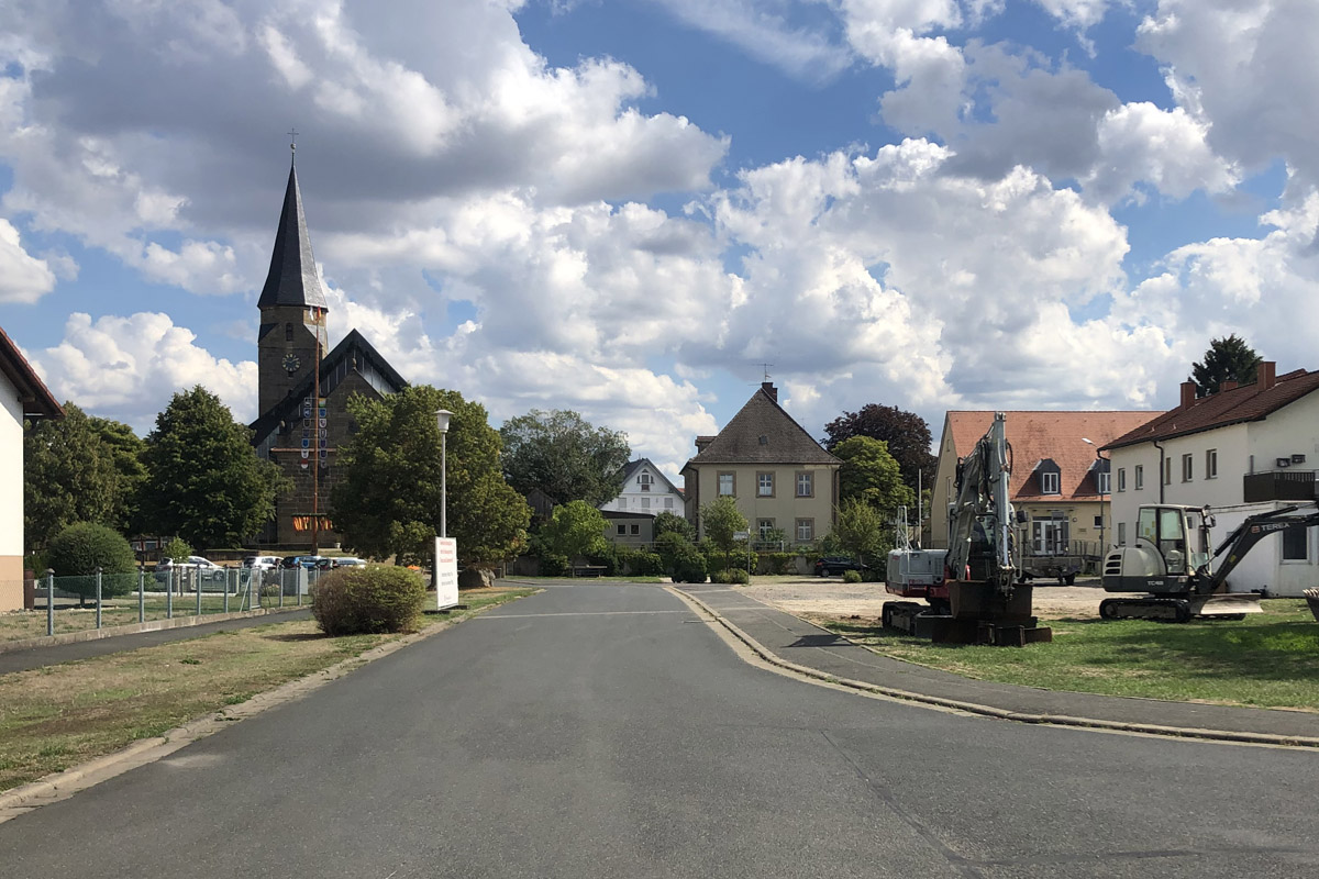 Zusammen mit Bürgermeisterin Sigrid Reinfelder und Bauamtsleiter Markus Schmitt beginnt, drei Tage vor dem großen Tag, ein kurzer Spaziergang durch die Ortsmitte. Am Samstag soll es hier nochmal ganz anders aussehen. Denn momentan laufen die letzten Vorbereitungen für die Eröffnung.