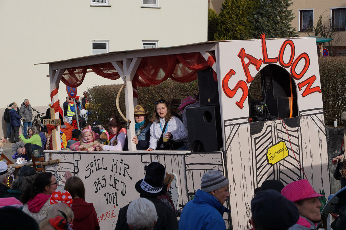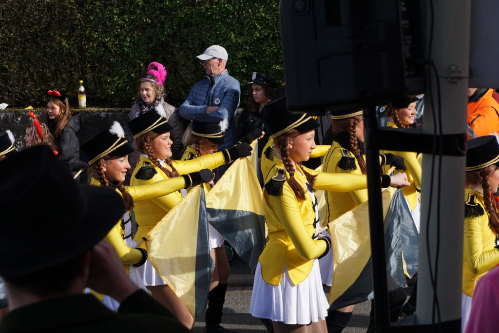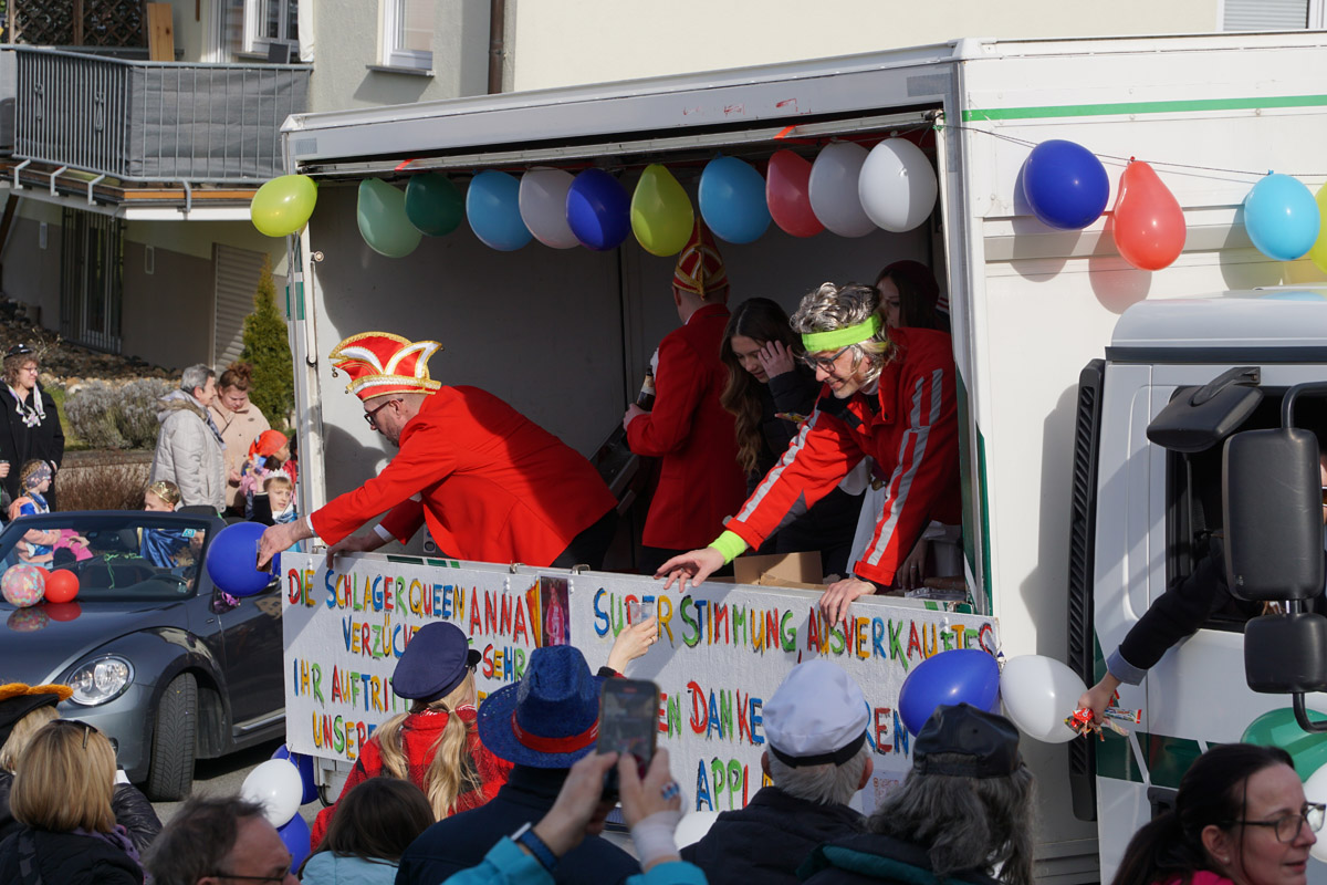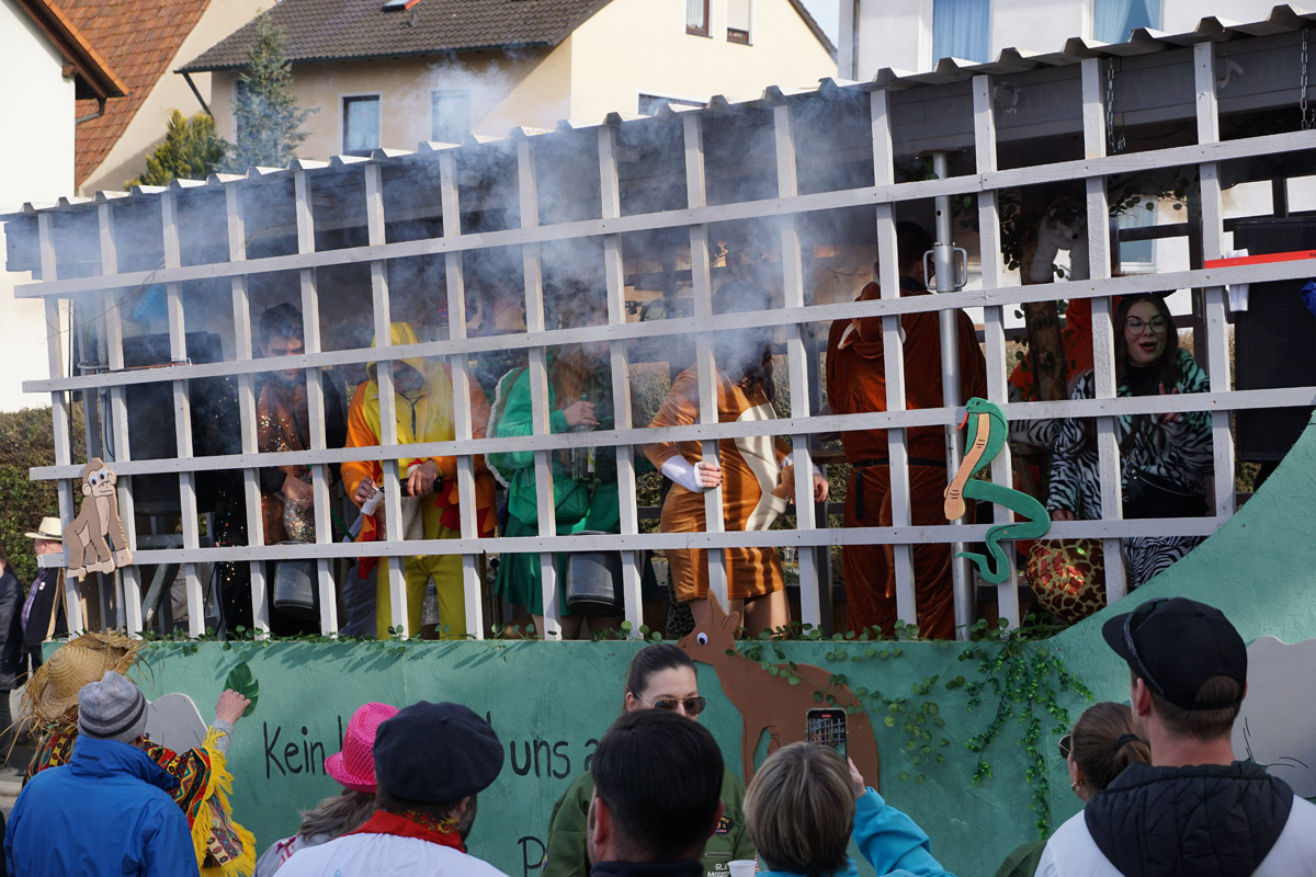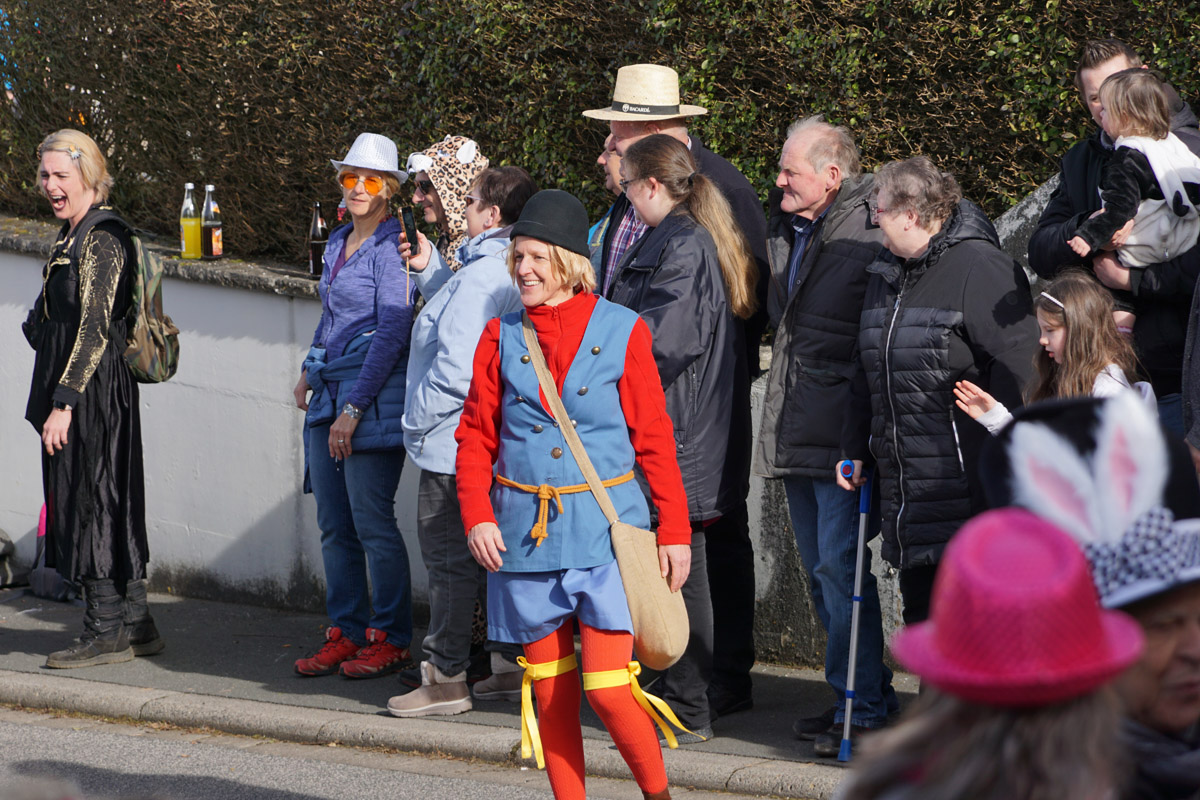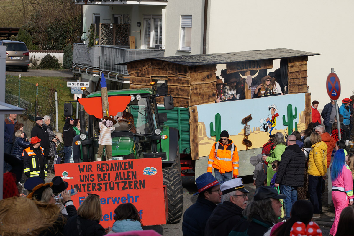 Erneut sehr lokal mit vielen Vereinen, KiTas und mehr präsentierte sich der Faschingsumzug. Angeführt wurde er zum 25. Mal von Georg Jüngling, unterstützt von den Schildmädchen Emilia und Selina. Direkt dahinter schwang das United Dance Team die Fahnen. Bürgermeisterin Sigrid Reinfelder lief als das „Güßbacher Wappenmännla“ mit, und die Gemeinde hatte sich auf ihrem Wagen das Thema Ortskern zu Eigen gemacht. Schließlich soll im Mai der neu gestaltete Bereich eingeweiht werden. Auch das Jugendforum freute sich auf dem Faschingswagen auf die neue Ortsmitte.