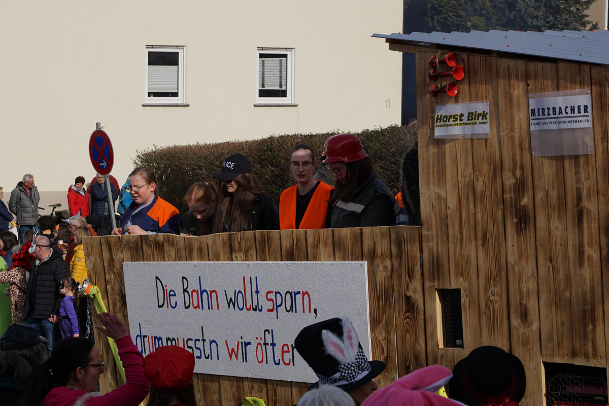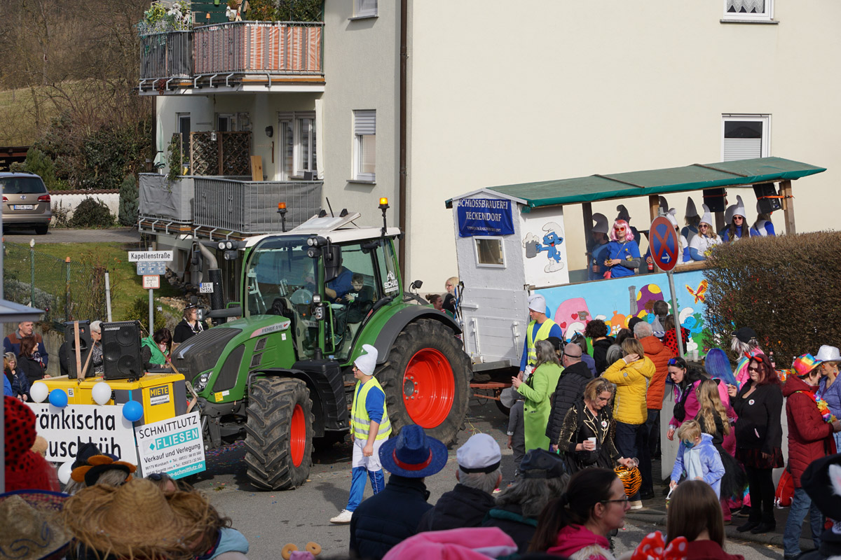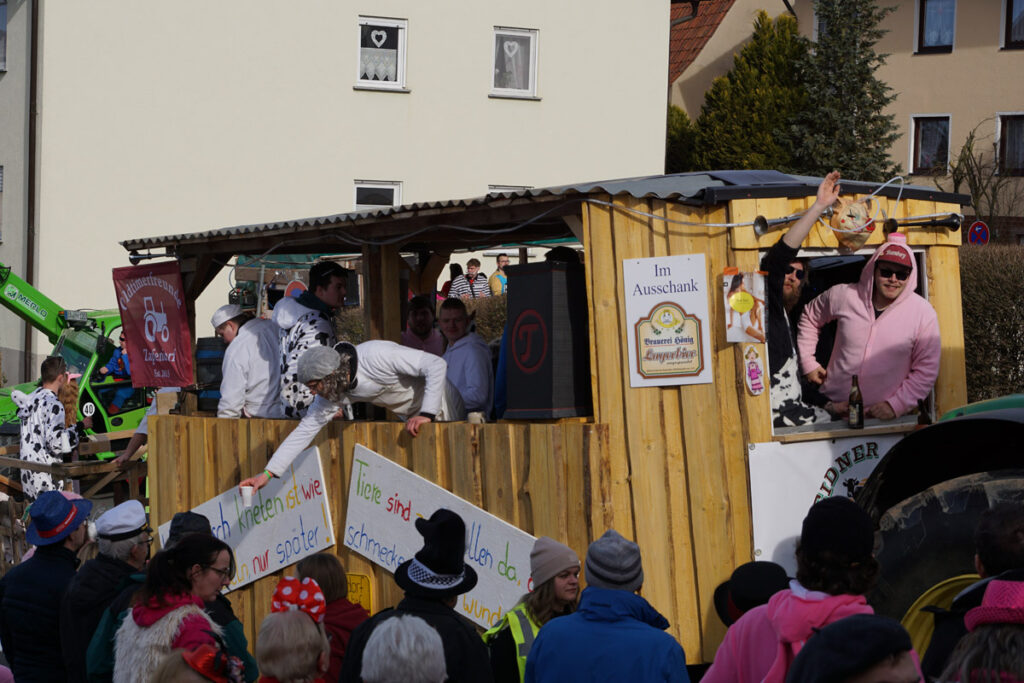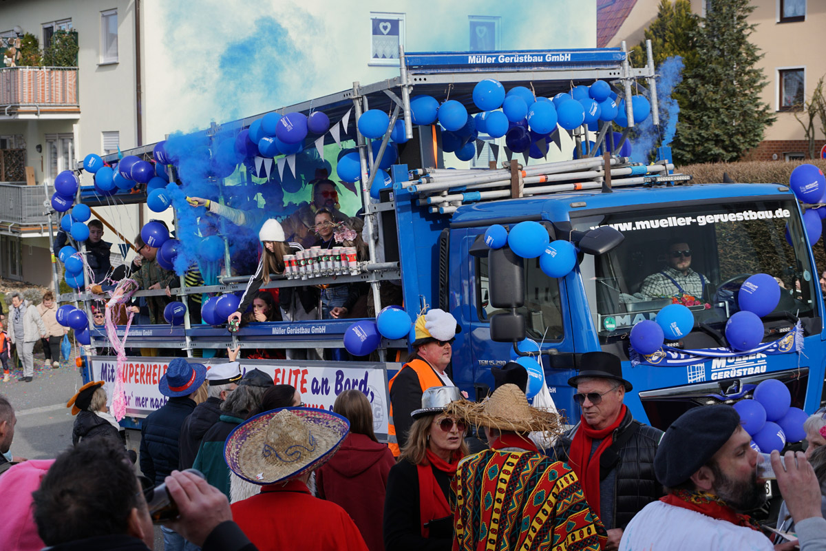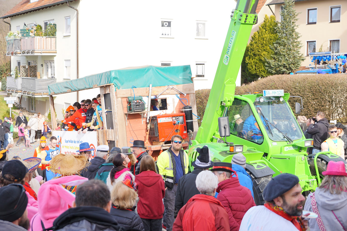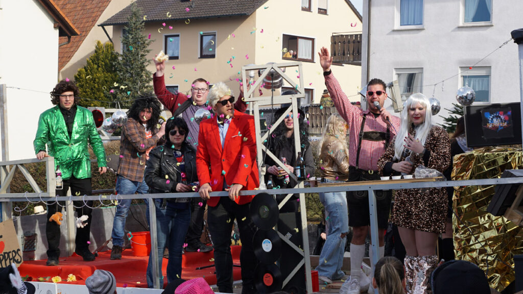 Bei den Familien Zeller, Hümmer und Langholz stand dieses Jahr Apres Ski im Mittelpunkt, ein klassisches Faschingsthema, dass dieses Jahr wieder häufig bei den Umzügen in der Region zu finden war. Musikalisch wurde es bei den Hohbacher Faschingsnarren, mit einem Rückblick auf die ZDF-Hitparade und damit die große Welt der Schlagermusik. Aus der Gemeinde Breitengüßbach fuhr auch noch die Jugendfeuerwehr mit.