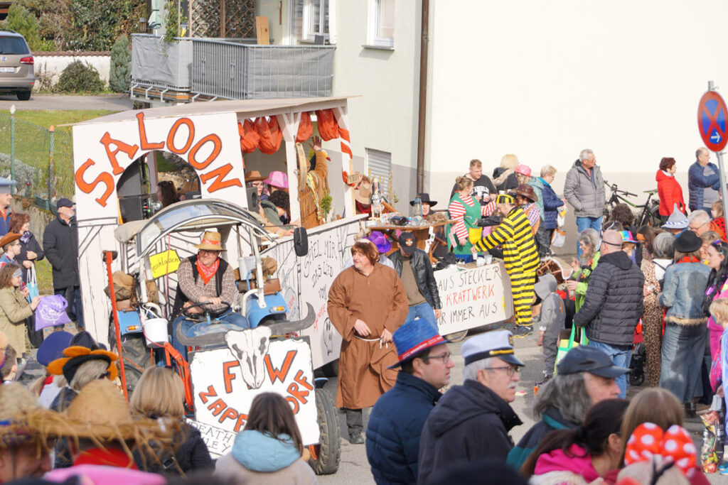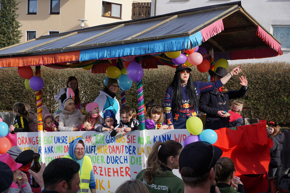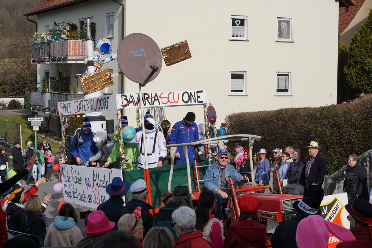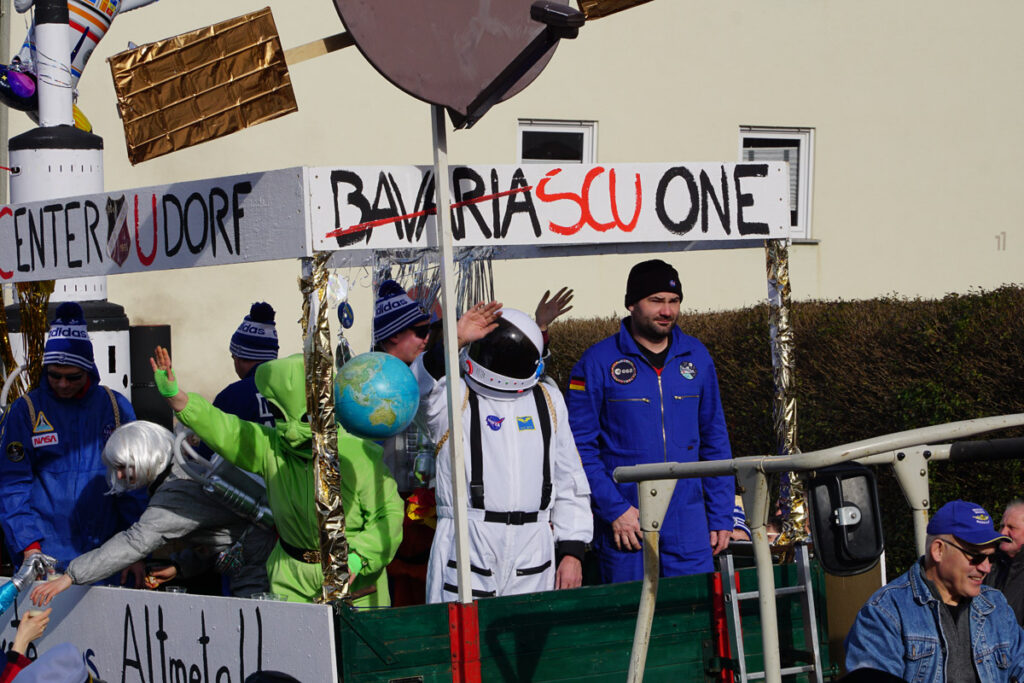 Die Idee von Bayerns Ministerpräsident Markus Söder, die bayerische Raumfahrt(industrie) zu stärken, sorgte für einige Kontroversen. Ein gutes Thema auch für Fasching. Also machte der SC Unteroberndorf aus „Bavaria One“ einfach „SCU One“. Aus Altmetall wurde eine Rakete gebaut – und die war beim 44. Unteroberndorfer Faschingsumzug drauf und dran, abzuheben. Ob das Aggregat mit Kohle betrieben wird? Der Rauch ließ jedenfalls darauf schließen. Aber egal – für die Kreativität gibt es auf jeden Fall einen Extrapunkt.