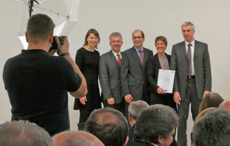 Die Gemeinde Breitengüßbach wurde dabei als einzige Gemeinde im Landkreis Bamberg berücksichtigt. Insgesamt kommen nur 39 Gemeinden in ganz Bayern in den Genuss der Förderung. Im Laufe des mehrstündigen Festaktes, bei dem exemplarisch einige Projekte vorgestellt wurden, nahmen die Erste Bürgermeisterin Reinfelder, der Zweite Bürgermeister Dorsch und der Gemeindekämmerer Hetzel aus den Händen des Amtschefs des StMELF Bittlmayer, den Förderbescheid entgegen. Gemeinsam mit den Gemeindevertretern freuten sich die eigens für die Veranstaltung angereiste Abgeordnete des Deutschen Bundestages Zeulner (CSU) sowie der Behördenleiter des ALE Bamberg Hepple.