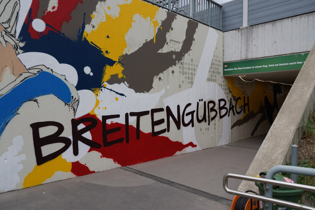 Bahnhof. Mit diesem Begriff verbinden viele Pendlerinnen und Pendler und Reisende allgemein oft wenig Positives. Vor allem die Zugänge sind meist wenig einladend. In Breitengüßbach ändert sich das gerade. Und die Neugestaltung der Bahnunterführung wirft auch eine Frage auf.