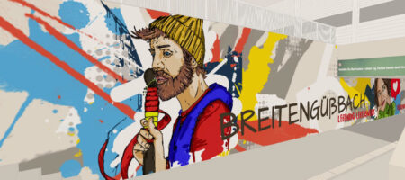 Um dieser Rolle gerecht zu werden und den Bahnhof zu einem freundlichen Willkommensort zu machen, soll die Bahnunterführung nun künstlerisch gestaltet werden! Dazu hat im Winter ein Wettbewerb mit verschiedenen Künstlerinnen und Künstlern [6] stattgefunden. Aus den acht eingereichten Beiträgen wählte eine Jury aus Gemeinderäten und ausgewählten Bürgern mit künstlerischem Hintergrund einen Gewinner aus: den Architekten und Graffitit-Künstler Oliver Schwan vom Atelier Expose.