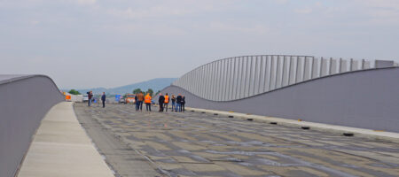 [7]Noch fehlt der Teer. Die Glaselemente wurden Anfang September montiert.