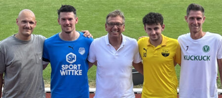 Im Titelbild: Die Teams aller vier teilnehmenden Vereine erhielten bei der Siegerehrung Preise aus der Hand von TSV-Vorsitzendem Stefan Neubauer (Mitte), die die Spielführer des VfL Mürsbach, SpVgg Rattelsdorf, TSV Breitengüßbach und SC Kemmern (im Blld von links) entgegennahmen.