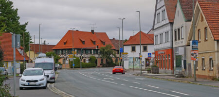 Im Titelbild: Blick in Richtung Kreuzung in der Ortsmitte Breitengüßbach.