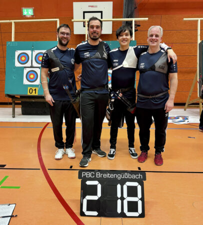 Aufgrund der guten Ergebnisse am ersten Wettkampftag reiste das Team mit großer Zuversicht nach Höchstadt zum zweiten Wettkampftag der Bezirksliga. Wegen eines kurzfristigen Ausfalls im Team konnte der zweite Wettkampftag nur zu dritt bestritten werden, was hieß: jeder Schütze muss alle Matches schießen. Trotz der Umstände galt die Prämisse den ersten Platz und damit den Aufstieg zu sichern. Das dreiköpfige Team des PBC startete etwas verhalten in den Wettkampf mit der teamintern niedrigsten Ringzahl des Tages: 196 Ringe. Ab dem zweiten Match lief es für die Schützen des PBC deutlich besser und man konnte konstant gute Ringzahlen über 200 abliefern. Ein besonders enges Duell war das mit den Schützen aus Thurnau, wo es bis zur letzten Passe spannend blieb. Zur Halbzeit hatte der PBC den Aufstieg schon fast gesichert. Nächstes Ziel: alle Matches gewinnen. Daran, dass dies klappen kann, gab es bis zum letzten Duell wenig Zweifel, da die Schützen des PBC konstant gut schossen.