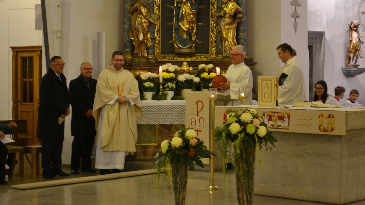 Die Einführung des neuen Pfarradministrators übernahm Dekan Christoph Uttenreuther. Dieser freute sich über den Zuwachs in der Kirchengemeinde und begrüßte Schürrer mit einer kleinen Ansprache. Anschließend wurden dem ehemaligen Pfarrer Valentin Tempel ein paar nette Worte gewidmet – der ist im vergangenen September nach zwanzigjähriger Tätigkeit im Pfarreienverbund in den Ruhestand gegangen. Bis zum Amtsantritt von Schürrer hat Pfarradministrator Edgar Hagel die Gottesdienste geleitet.