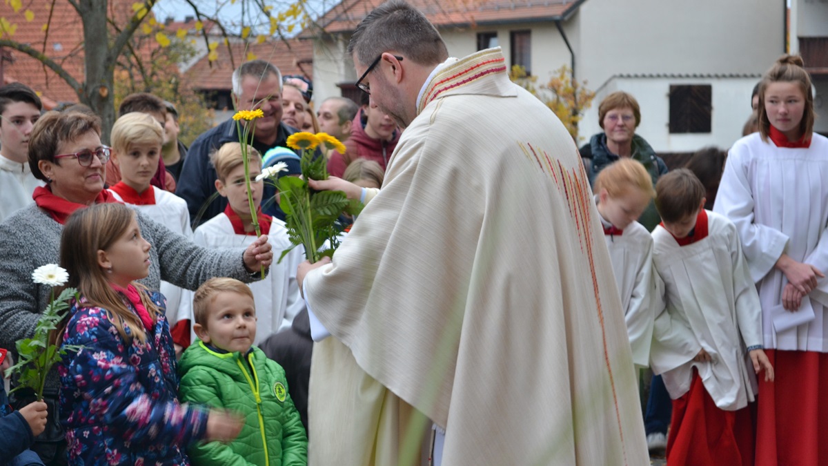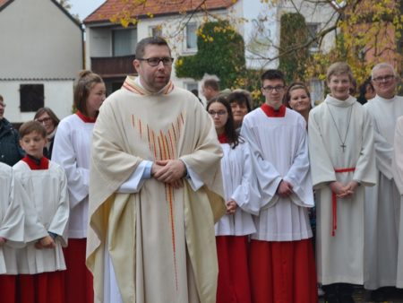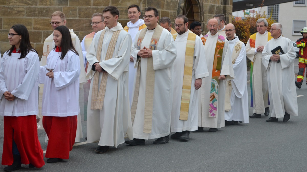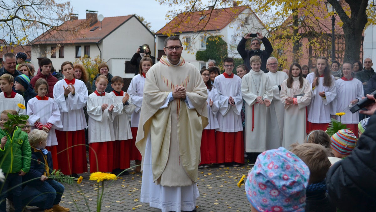 Der erste Treffpunkt des Tages war die Nikolauskapelle in Breitengüßbach. Von dort aus wurde Markus Schürrer in einem Festzug zur Pfarrkirche geleitet. Hier durfte er sich schon mal über Blumen von den Kindern und Erzieherinnen der örtlichen Kindergärten freuen. Der anschließende Festgottesdienst zur Einführung war reich besucht – viele Bürger wollten den neuen Pfarrer kennen lernen und sich einen ersten Eindruck verschaffen. Auch der Bürgermeister der Gemeinde Kemmern und die Bürgermeisterin aus Breitengüßbach waren samt ihrer Vertreter anwesend.
