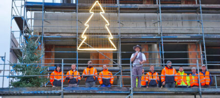 Es war ein ereignisreicher Tag auf der Baustelle. Richtfest um 15 Uhr. Und wenige Stunden zuvor ein Bombenfund! Das Objekt aus dem Zweiten Weltkrieg erwies sich glücklicherweise als ungefährlich, der Räumdienst hatte alles schnell im Griff. Gisela Raab, Geschäftsführerin des gleichnamigen Bauunternehmens, zeigte sich erleichtert – und erfreut zugleich, dass das Richtfest früher als geplant stattfinden konnte. Rechtzeitig vor dem Winter.