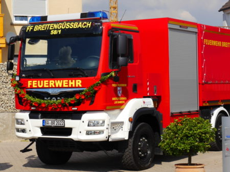 Ein großes Dankeschön von allen Beteiligten richtete sich an die Bundestagsabgeordnete Emmi Zeulner (Wahlkreis Lichtenfels, Kulmbach, Bamberg-Land), die sich, laut Landrat Johann Kalb, mit Händen und Füßen auf Bundes- und Landesebene für das neue Einsatzfahrzeug der FFW Breitengüßbach eingesetzt hat. Es sei nicht nur für Breitengüßbach wichtig, sondern auch über die Grenze hinaus für den ganzen Landkreis, so Zeulner.