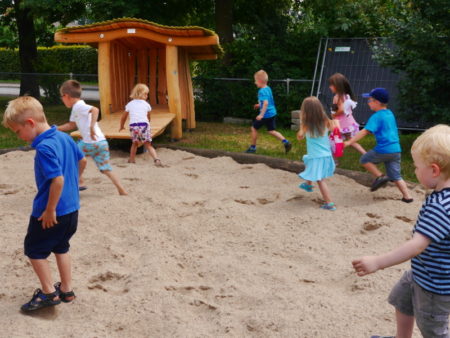 Bereits vor zehn Jahren wurde mit der Umgestaltung des Spielplatzes begonnen. Damals wurde zusammen mit den Kindern ein Workshop veranstaltet, bei dem sie ihre Ideen mit einbringen konnten. Die Firma Spielträume [6] unter Tanja Potrykus und Thomas Gröhling hat diese Ideen in die Umsetzung mit einbezogen und den Spielplatz so neu gestaltet. Auch das neu gebaute kleine Stelzenhaus ist ein besonderes Werk der Firma – die Spielgeräte sollen mit ihren Holzkonstruktionen die Verbundenheit mit der Natur darstellen.