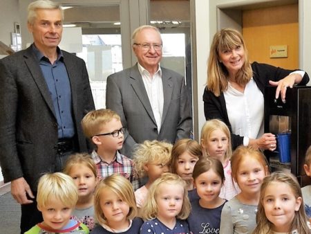 Über den Wasserspender, der direkt an die Trinkwasserleitung angeschlossen ist, versorgen sich die Kinder in der Kindertageseinrichtung ab sofort selbst mit Trinkwasser. Sie können dabei auf Knopfdruck zwischen stillem und sprudelndem Wasser mit Kohlensäure wählen und ihre Trinkgefäße befüllen.