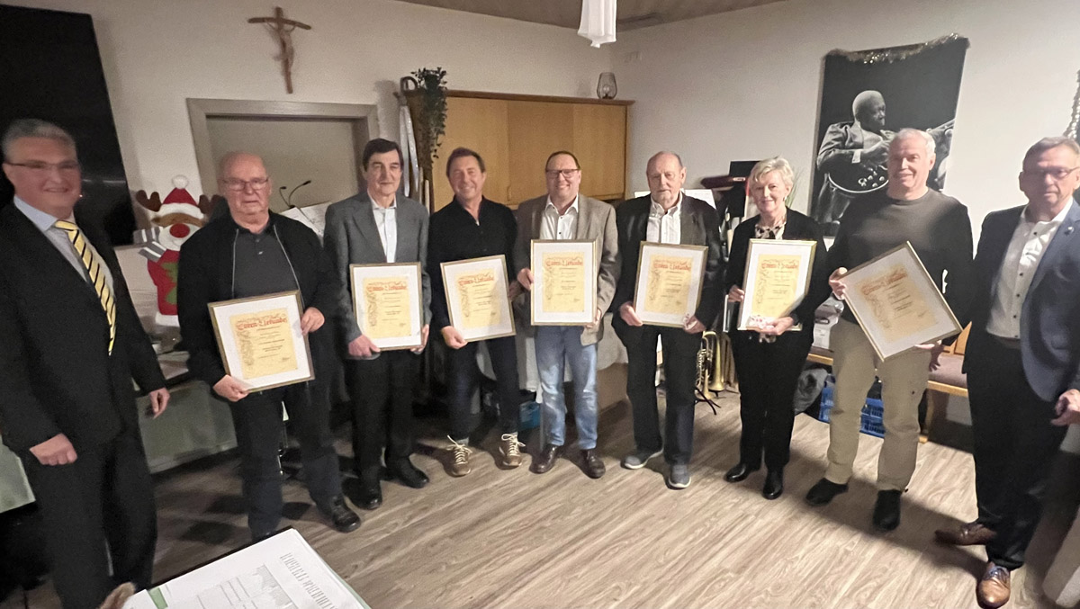 40-jährige Mitgliedschaft: Petra Angermeyer, Gabriele Borchardt, Anne Fleischmann, Werner Lindner, Elisabeth Mahkorn, Christian Nüßlein, Joachim Schröder, Hans-Jürgen Uch
