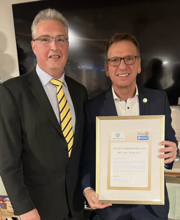 Den Anerkennungsurkunde des DFB-Ehrenamtspreises überreichte stellvertretender Vorsitzender Dietmar Weiß noch an Ersten Vorsitzenden Stefan Neubauer.