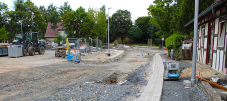 Im Titelbild: Die Arbeiten an der Hauptstraße im Zuge der Dorferneuerung sind im vollen Gang.