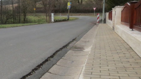 [9]Oberflächige Straßenschäden „An der Ziegelhütte“, die anliegenden Häusern werden aufgrund eines maroden Unterbaus zur historischen Brücke hin durch den einfahrenden Schwerlastverkehr stark beeinträchtigt.