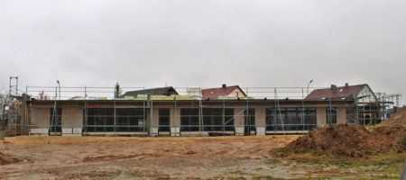 Rascher Baufortschritt beim Geracher Kindergarten, als zukünftiger Fassadenanstrich wir ein neutrales „Silbergrau“ zur Ausführung kommen.