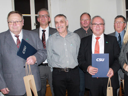 Die Festveranstaltung bot ferner die Möglichkeit, langjährige Mitglieder auszuzeichnen. So konnten Walter Peter und Veit Popp für 25 Jahre Mitgliedschaft geehrt werden. Michael Beck und Wolfgang Göppner wurde das goldene Ehrenabzeichen für 40 Jahre bei der CSU verliehen. Baptist Christa wurde für 50 Jahre bei der CSU geehrt. Für ein besonderes Jubiläum konnte Georg Deuber ausgezeichnet werden: Er ist bereits seit 60 Jahren in der CSU aktiv.