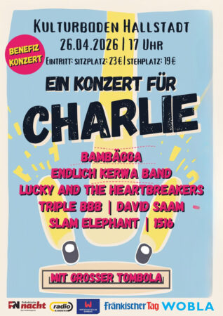 Auch in diesem Jahr bietet der Kulturboden in Hallstadt wieder eine Bühne für einen besonderen Benefizabend. Mit Live-Musik verschiedener Künstler und einer Tombola mit attraktiven Gewinnen zugunsten des vierjährigen Charlie soll Hoffnung hör- und spürbar werden: Am Sonntag, den 26. April ab 17 Uhr im Kulturboden in Hallstadt.
