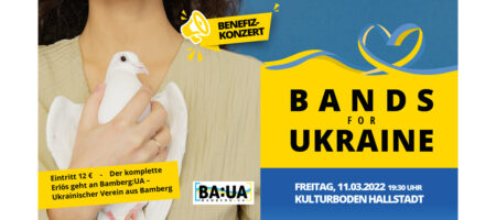 Anlässlich der schrecklichen Ereignisse im Rahmen der russischen Angriffe auf die Ukraine und dem unermesslichen Leid, dass der Krieg über die Menschen dort bringt, hat der Veranstaltungsservice Bamberg kurzfristig ein Benefizkonzert zu Gunsten des Bamberg:UA e.V., dem Ukrainischen Verein aus Bamberg, initiiert.