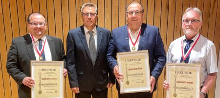 Im Titelbild: Die drei Geehrten (von links) Bürgermeister Thomas Söder, Heiko Nitsche und Günter Hofmann zusammen mit dem stellvertretenden Bürgermeister Hans-Jürgen Wich, der die Auszeichnungen überreichen durfte.